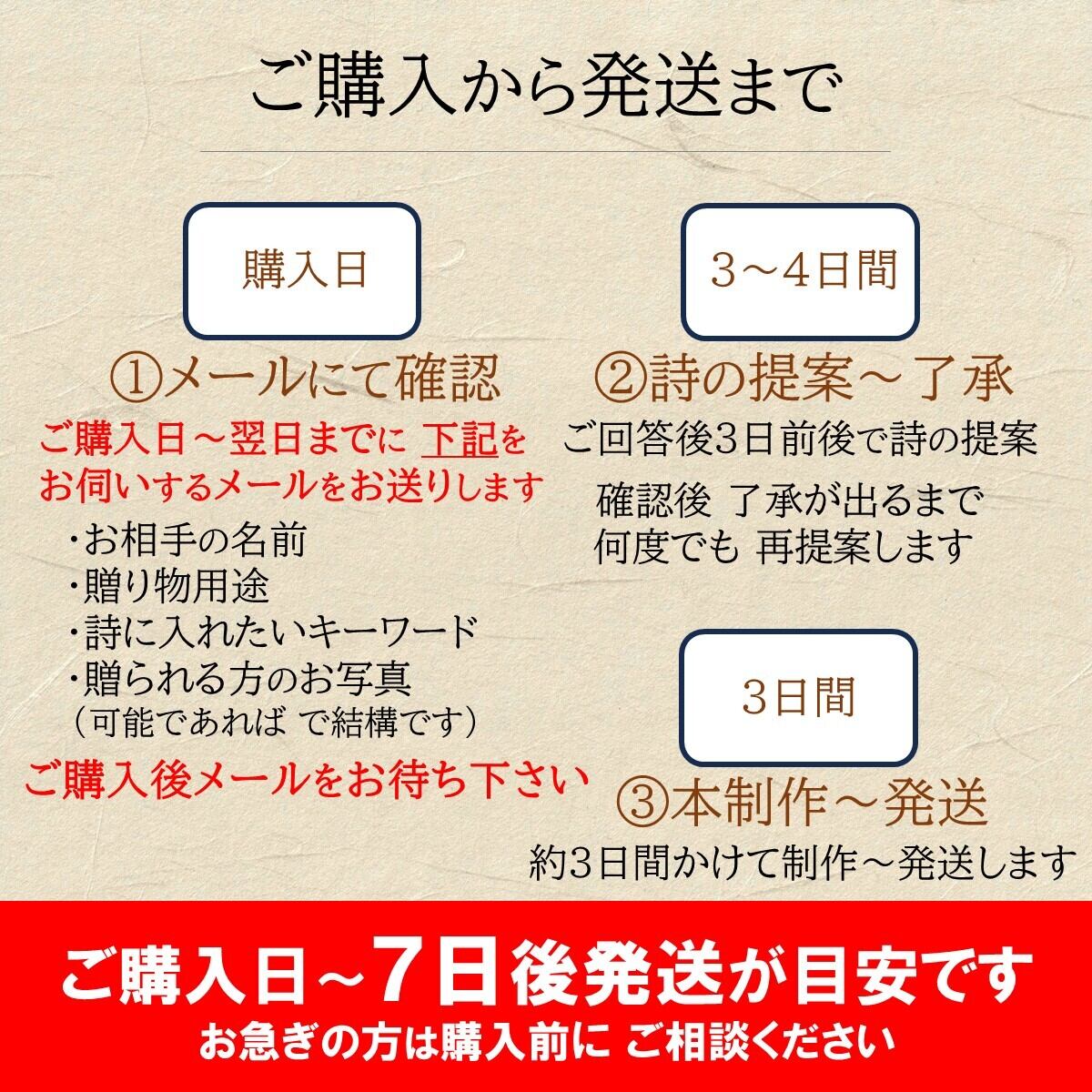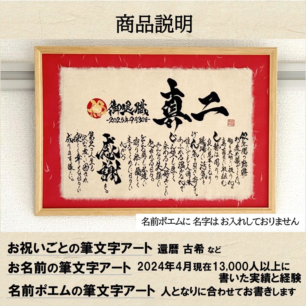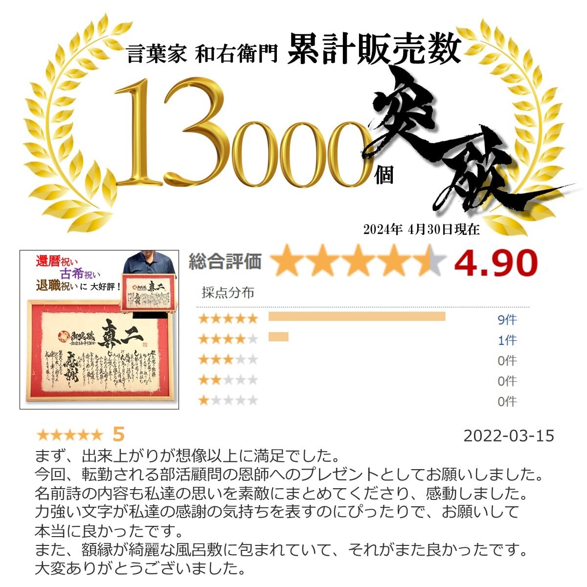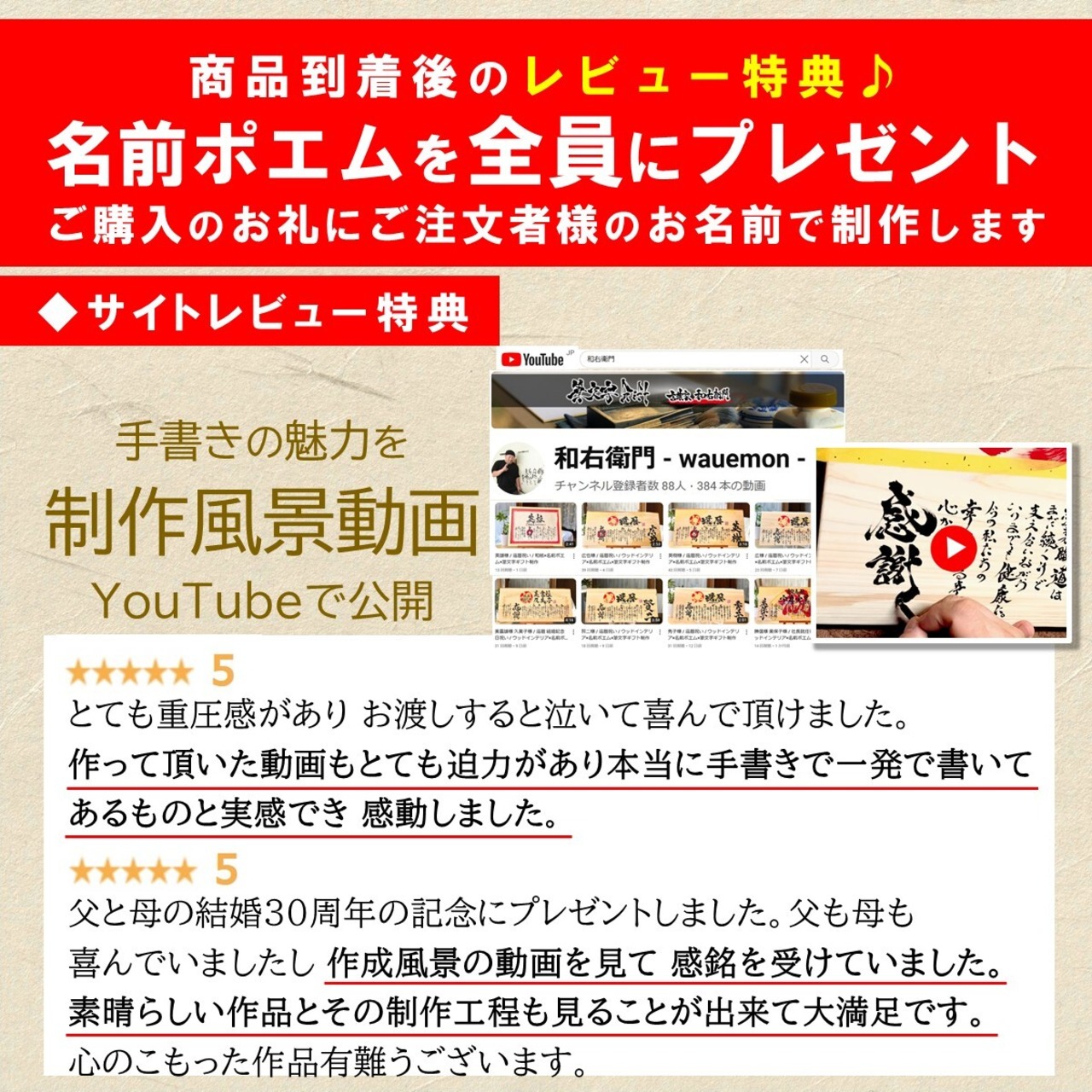 #還暦祝い #古希祝い #喜寿 #米寿 #入学祝い #卒業祝い #退職祝い #開店祝い #開業祝い #会社設立 #周年祝い #結婚祝い #結婚記念日 #誕生日 #木婚式 #銀婚式 #金婚式 #真珠婚 #父の日 #名入れ #名前入り #名前詩 #名前ポエム #男性 #父 #義父 #上司 #直筆 #手書き #送料無料